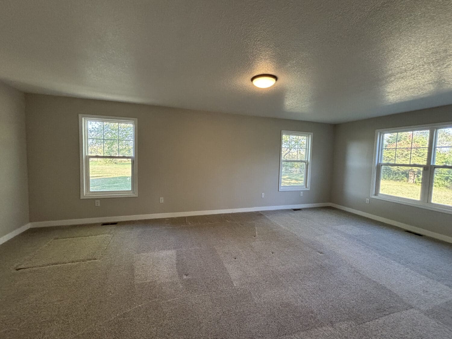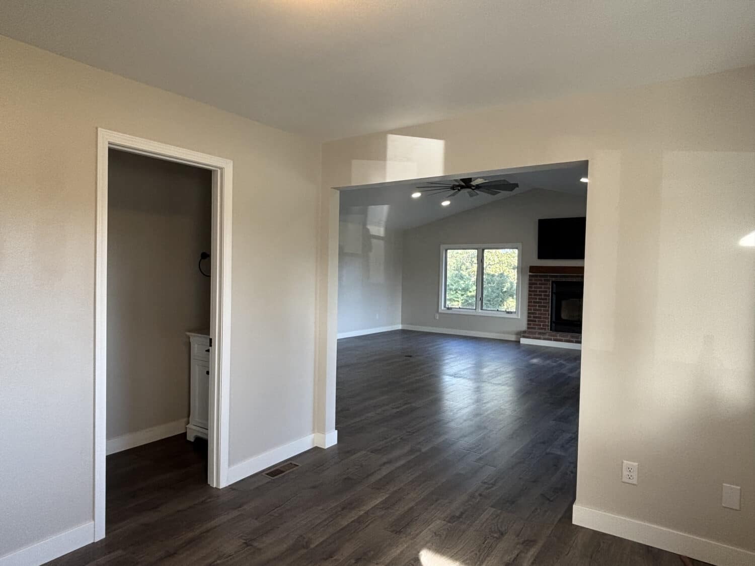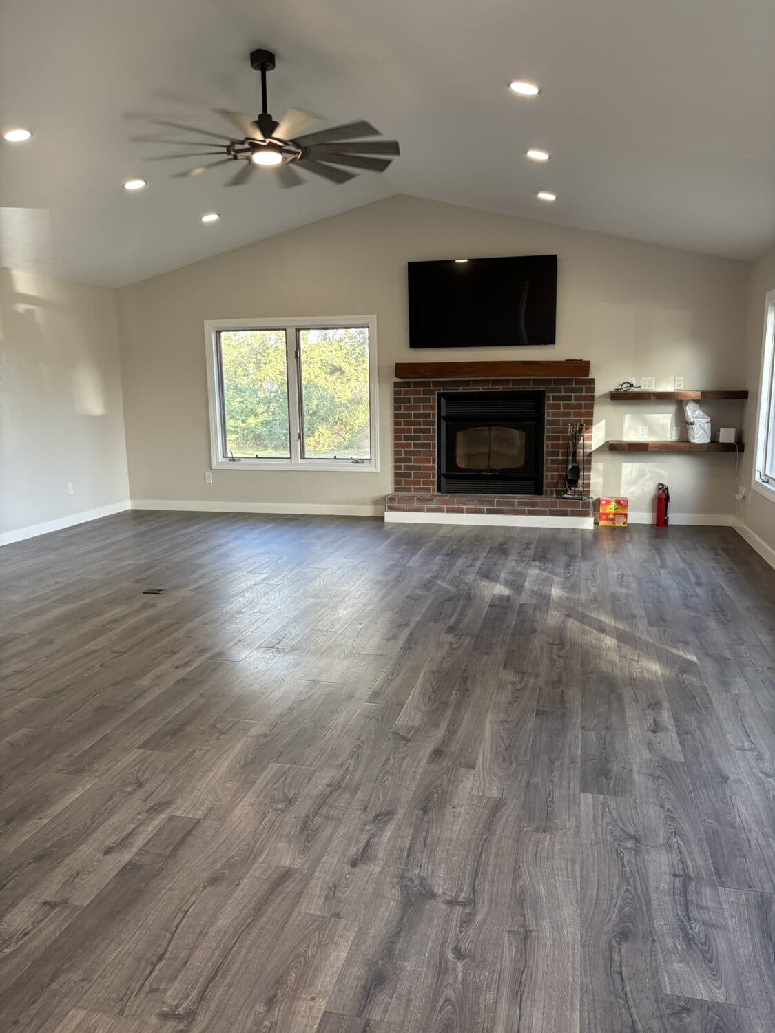 You’ll love the recent renovations including fresh paint and flooring throughout the home. Stepping inside, you’ll be welcomed by the cozy foyer which has a spacious half bathroom for your convenience. Located just off the foyer, an additional ensuite would be perfect for a second bedroom or guests. The expansive living room with a brick fireplace and vaulted ceilings is the ideal space for gathering with your friends and family. Escape to the sizable master suite with an oversized walk-in closet and a spa-like master bath with a soaker tub and 6x4 walk-in shower. The new windows in this room make the perfect spot to enjoy the views that surround the property to the east and north. The master bedroom has its own heating and air unit for an even more comfortable and relaxing space to unwind at the end of the day.