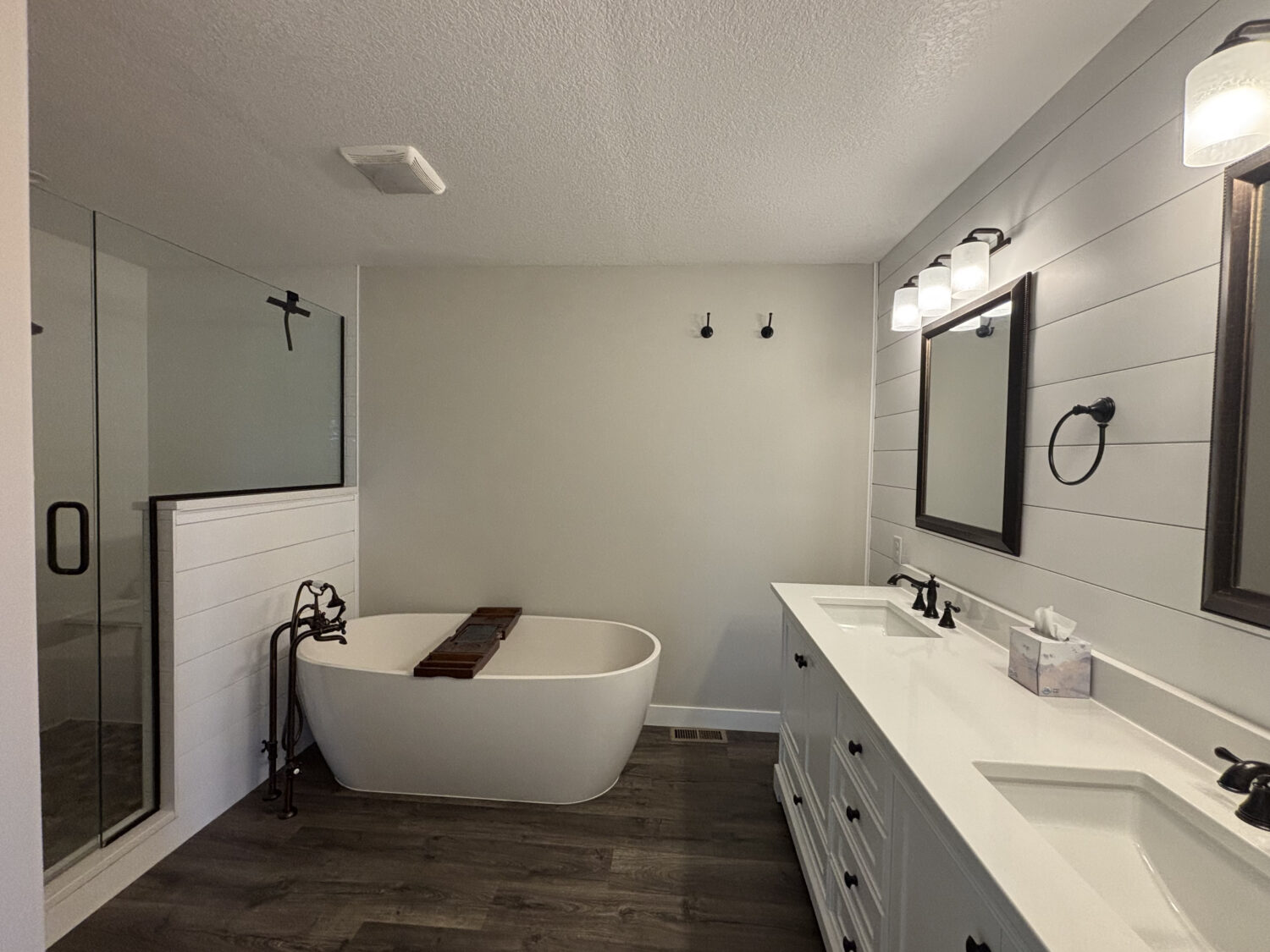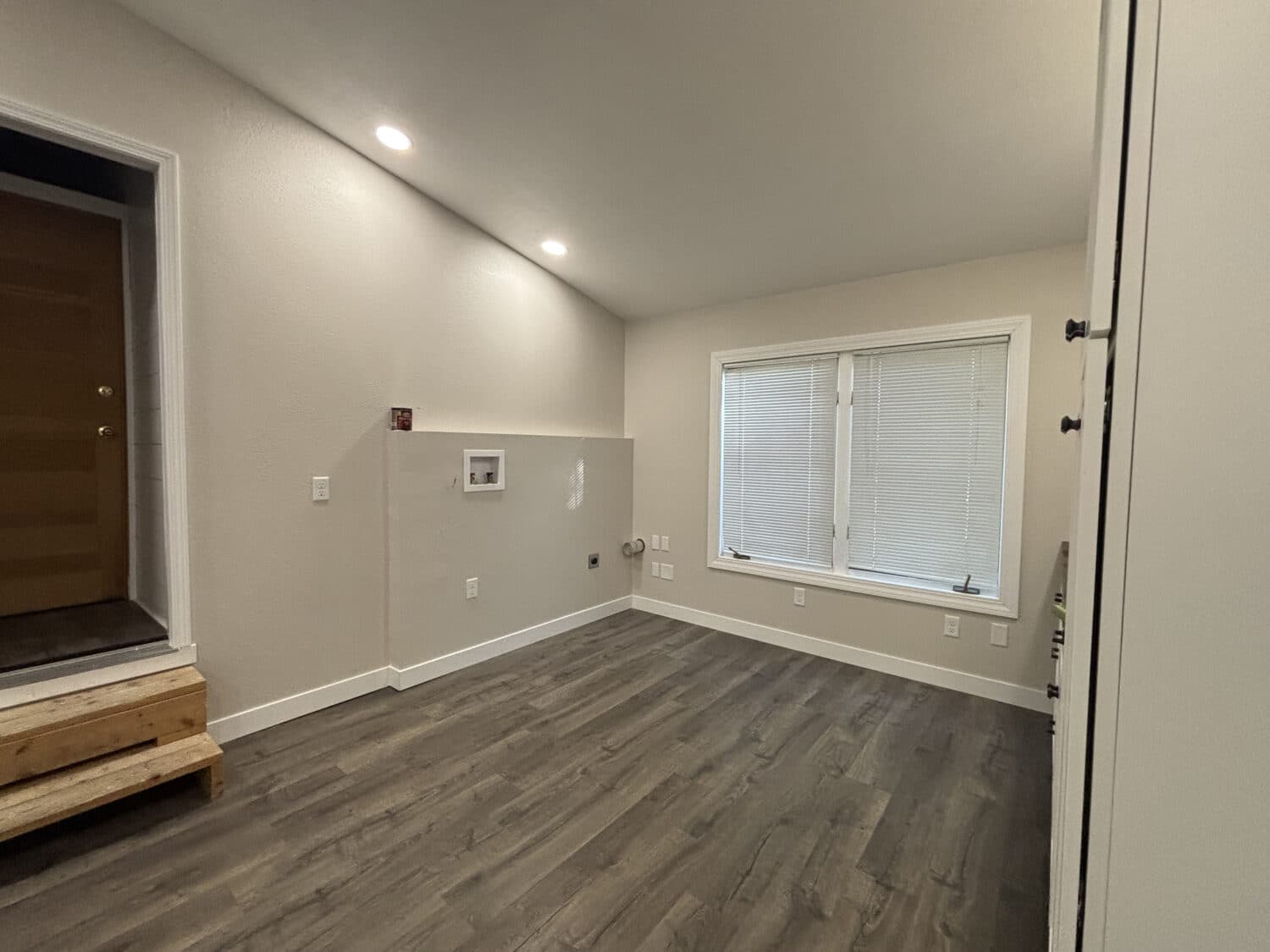 The updated kitchen and dining area is light and airy and provides plenty of room for entertainment. Tall cabinets, shiplap backsplash and quartz countertops make this space functional and beautiful! Access to the back patio and hot tub is off the dining area which makes a great space for your guests to enjoy both inside and outside gatherings. Through the kitchen you’ll find the spacious mudroom/laundry room area which has tons of built-in cabinets and storage options for you! The third bedroom, which is situated off the mudroom area, could also serve as an office or craft room.