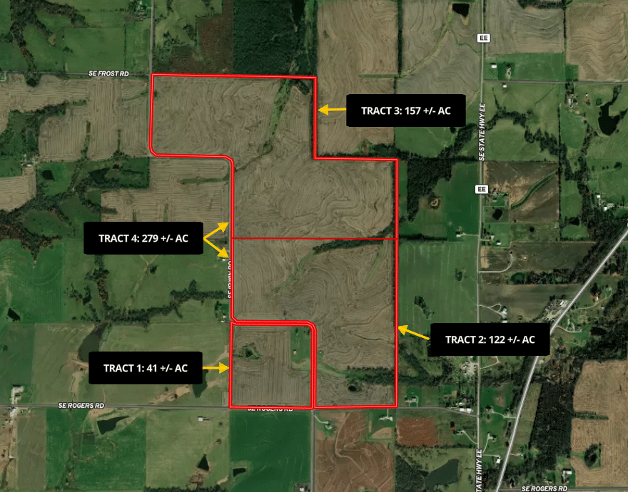There are four tracts in this auction. Tract 1 is being offered individually only. Tracts 2 and 3 are being offered individually and in combination as Tract 4 and will sell in whichever format garners the most proceeds. We will take the high bids from Tract 2 and Tract 3, add a $75,000 escalator and that is where the bidding will begin for Tract 4. If there are no bids on Tract 4, Tracts 2 and 3 will sell separately.