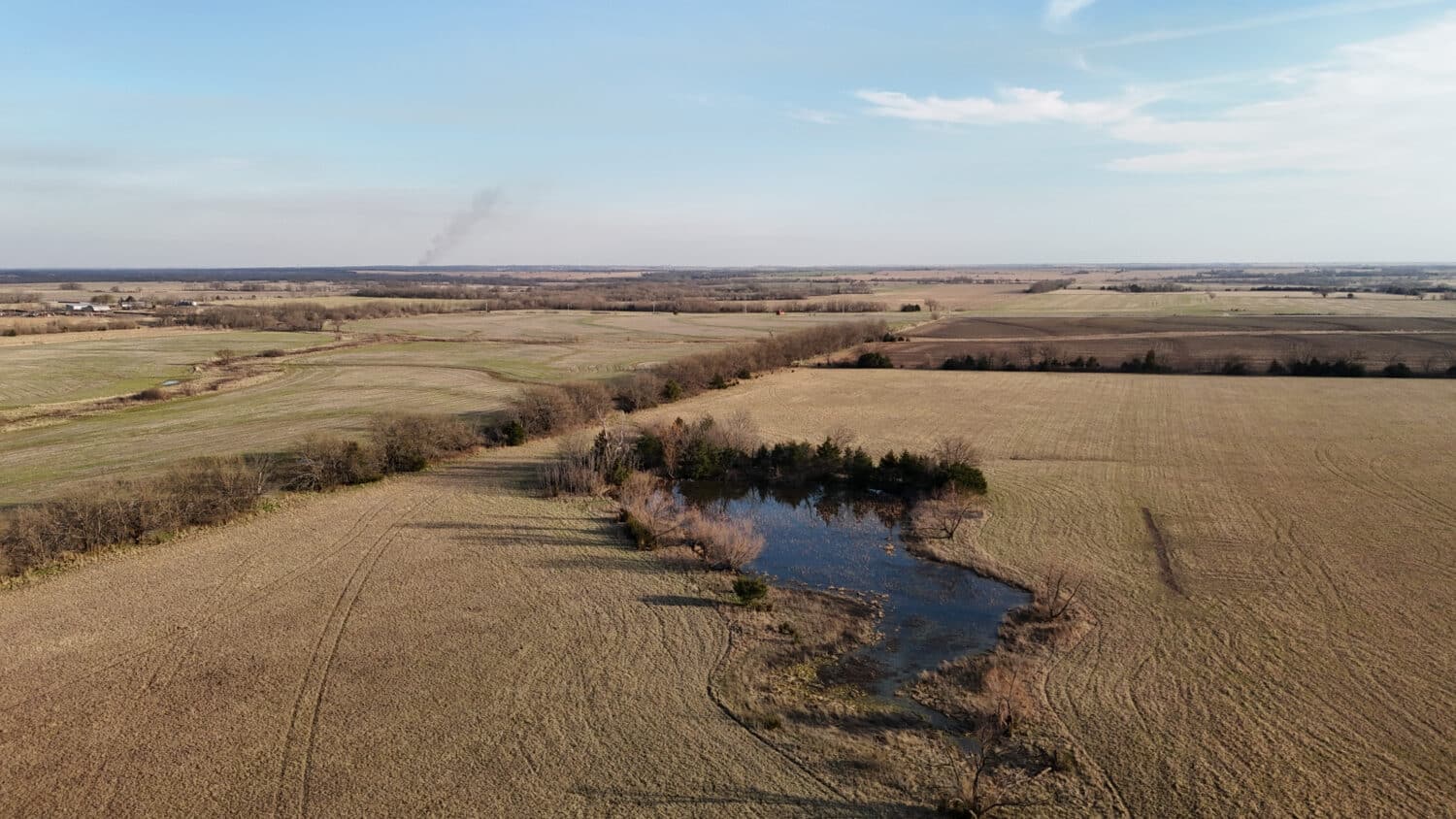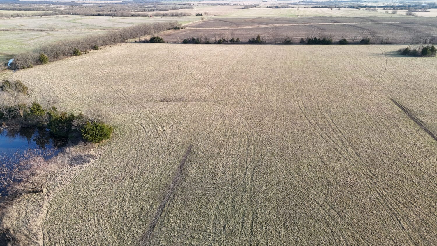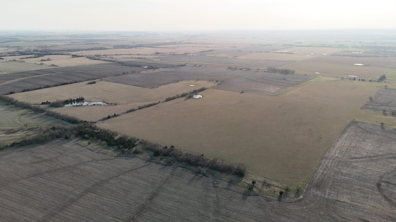 Tract 6 totals 160 acres, more or less, and is composed of an upland tillable field along the west boundary with the balance in hay meadow and a small pond. According to FSA records, the total cropland acreage is 59.66 acres and the hay meadow acreage is approximately 95 acres, providing a high percentage of revenue generating land for the ag producer. Per the soil map, the overwhelming majority soil type on this tract is good Class 2 Woodson silt loam with 0-1% slopes totaling  144 acres with the entirety of the balance being good Kenoma silt loam with 1% to 3% slopes.