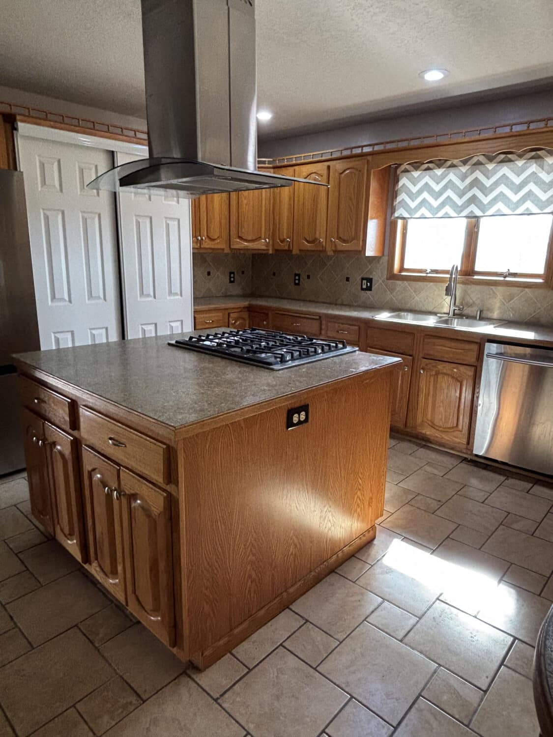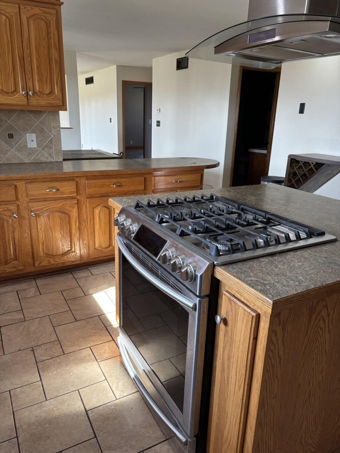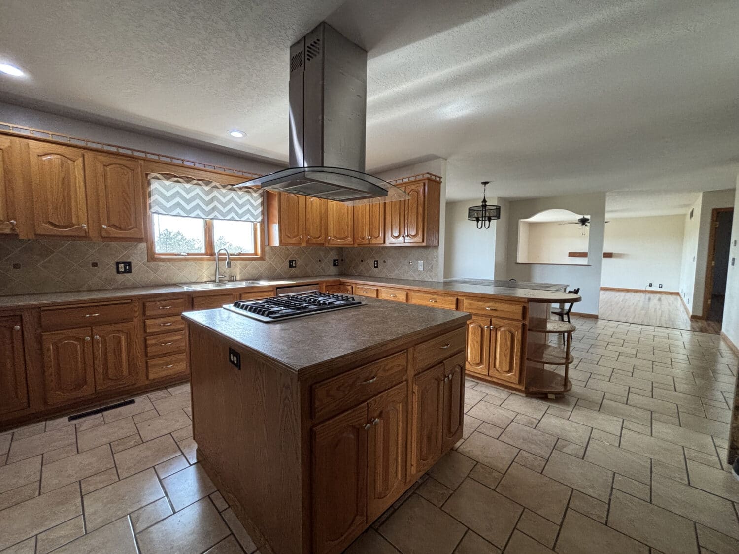 Inside, the home features 4 bedrooms (2 nonconforming), 3 full bathrooms, a spacious living room that opens to the dining area, and an additional living space in the partially finished basement, providing plenty of room for relaxing or entertaining. The living room is filled with natural light from the west-facing windows, perfectly framing those stunning Kansas sunsets. Just off the living room, the dining area offers ample space for a full-size table and flows directly into the kitchen. The kitchen provides plenty of cabinet space and includes a large island with a built-in stovetop, making it a great place to gather while preparing meals.